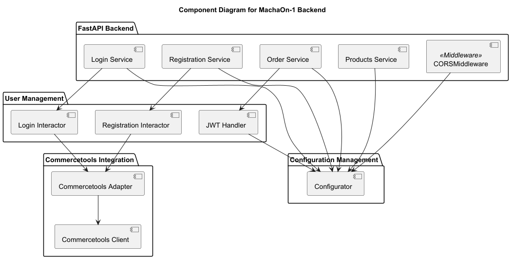 The backbone of Machcon-C1 Backend is its seamless integration with Commercetools, which acts as the primary backend for managing users, products, and orders.